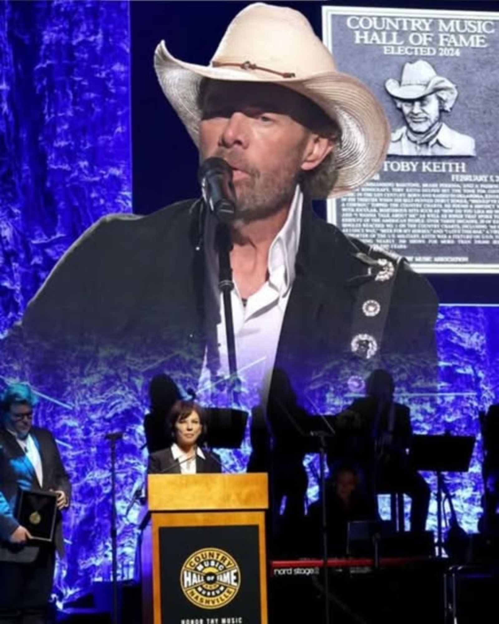 That night, inside the Country Music Hall of Fame, the kind of silence that follows a legend filled the room. Tricia Covel stood under the soft amber lights, holding the honor that her husband, Toby Keith, had earned but never got to receive himself.